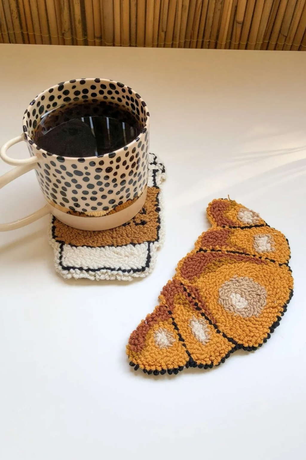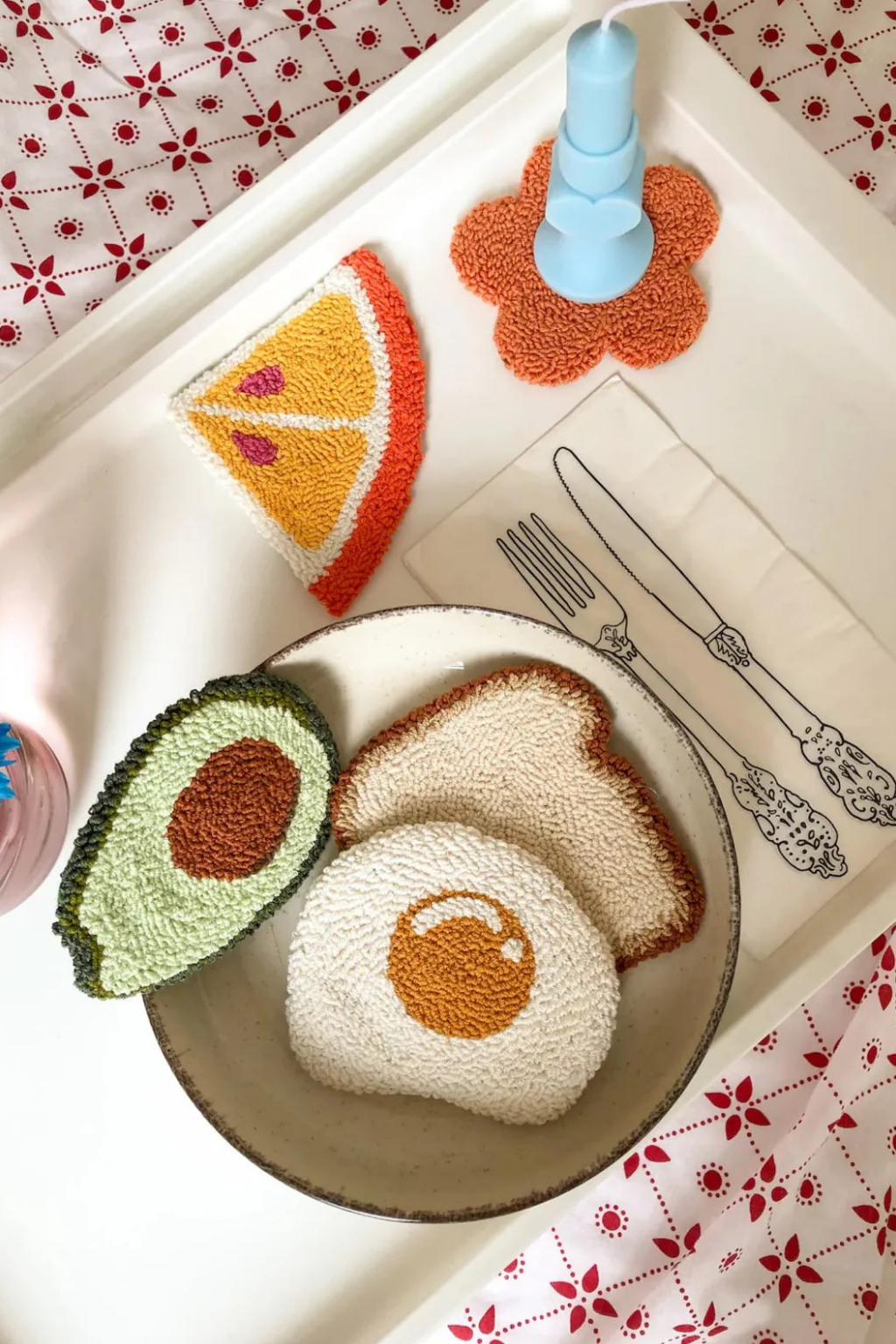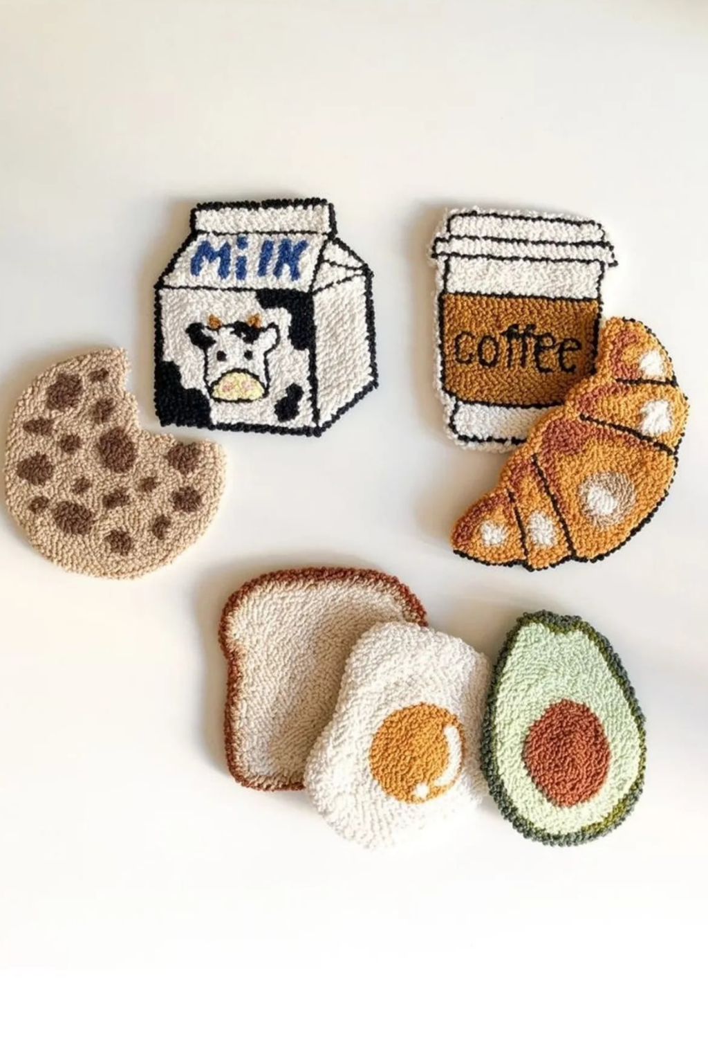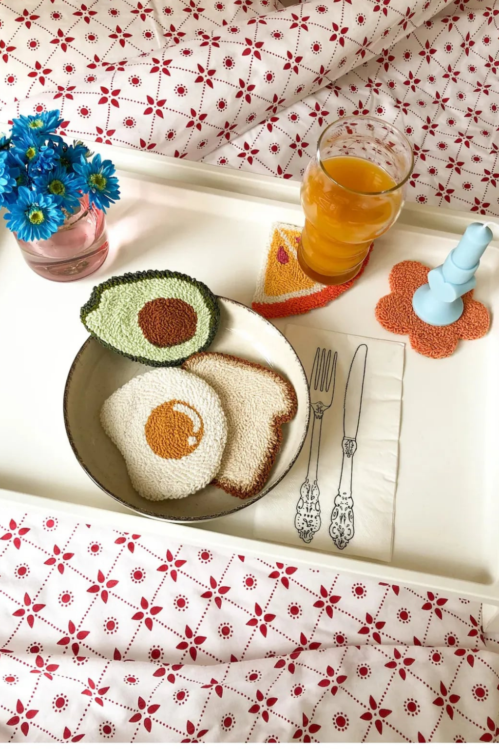 Kahvaltı Avokado Kruvasan Desenli Bardak Altlığı Sunumluk Masa Süsü