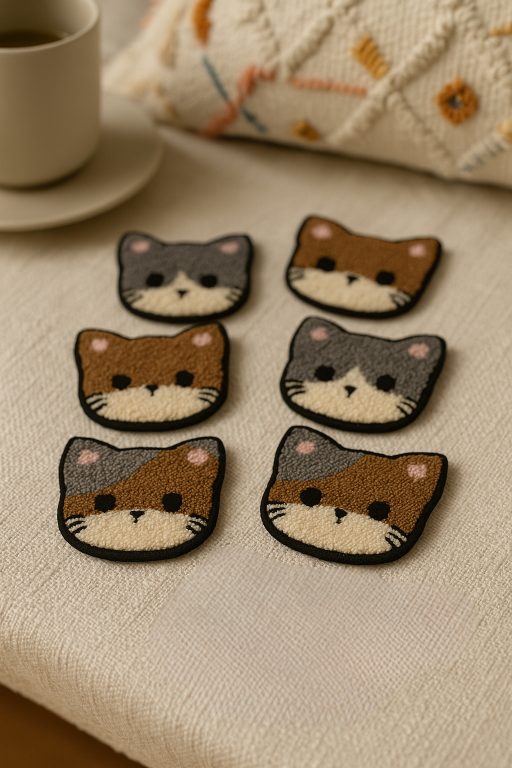 Kedi Desenli Bardak Altlığı Sunumluk Masa Süsü