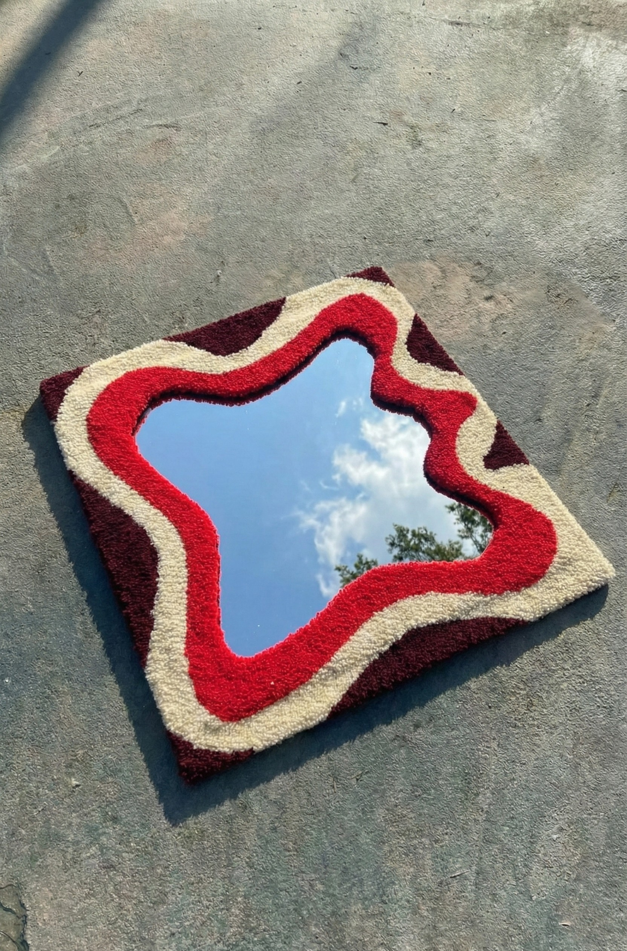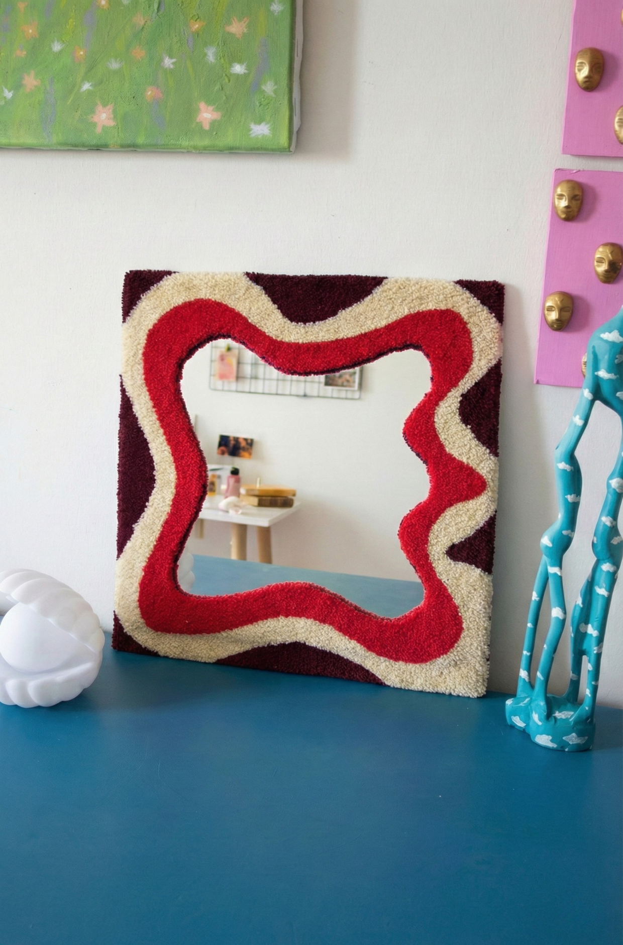 Evinizin havasını değiştirecek, el yapımı dekoratif tufting ayna. Yumuşak dokusu ve estetik renk geçişleriyle hem modern hem de bohem dekorasyon tarzlarına uyum sağlar.