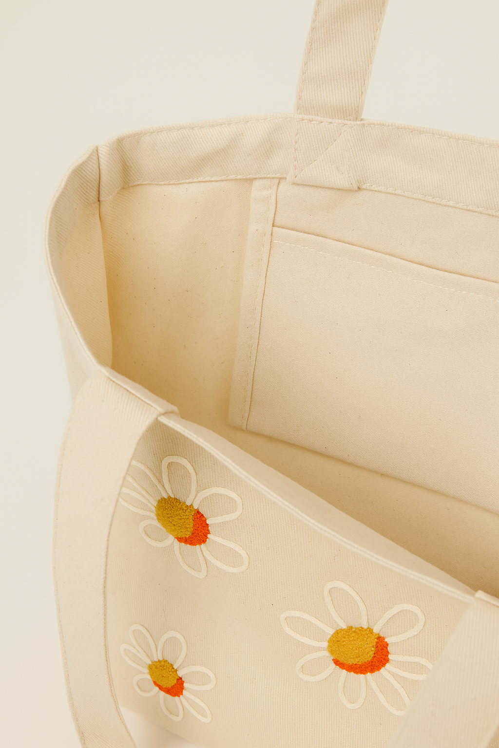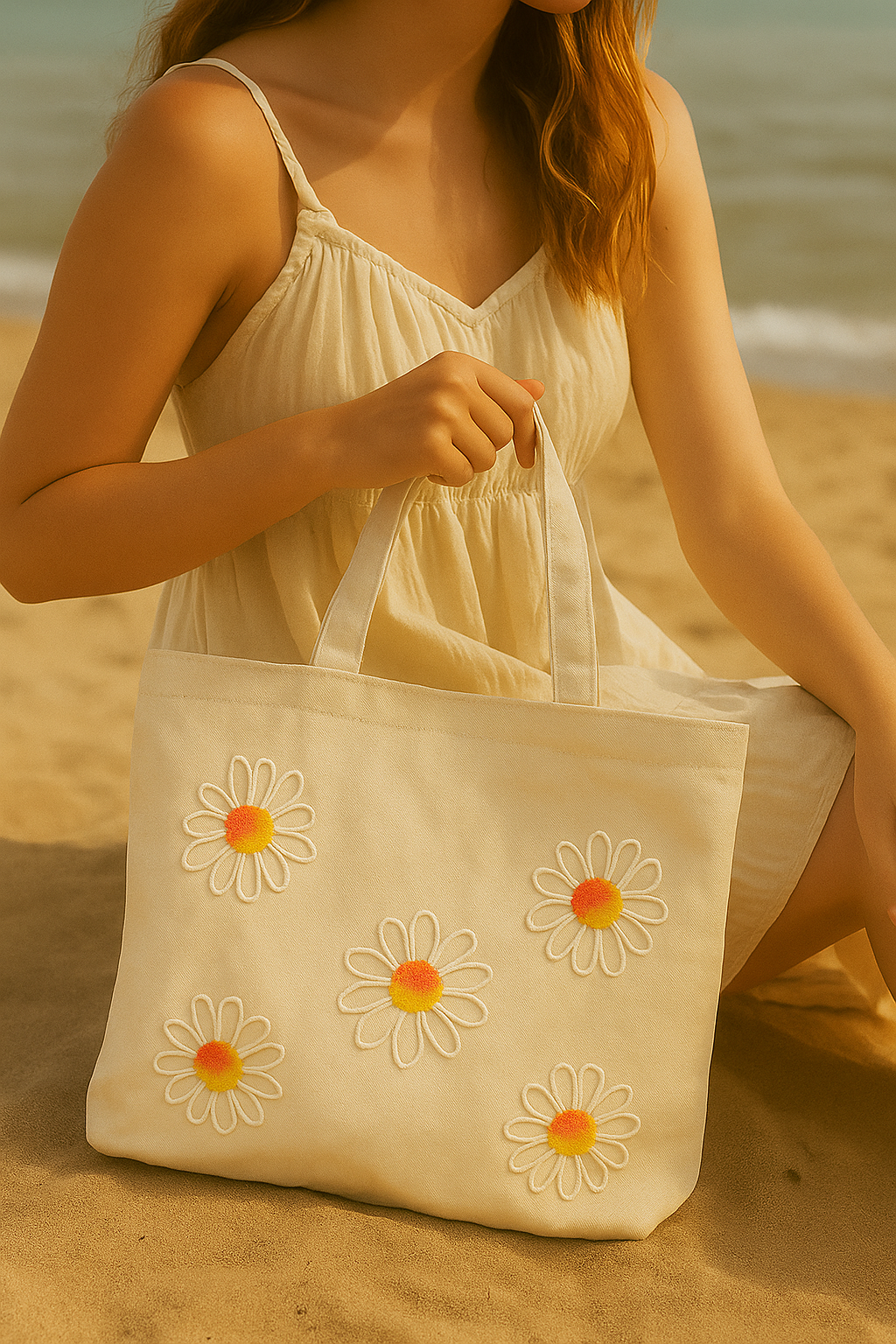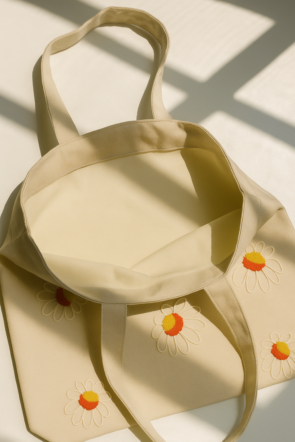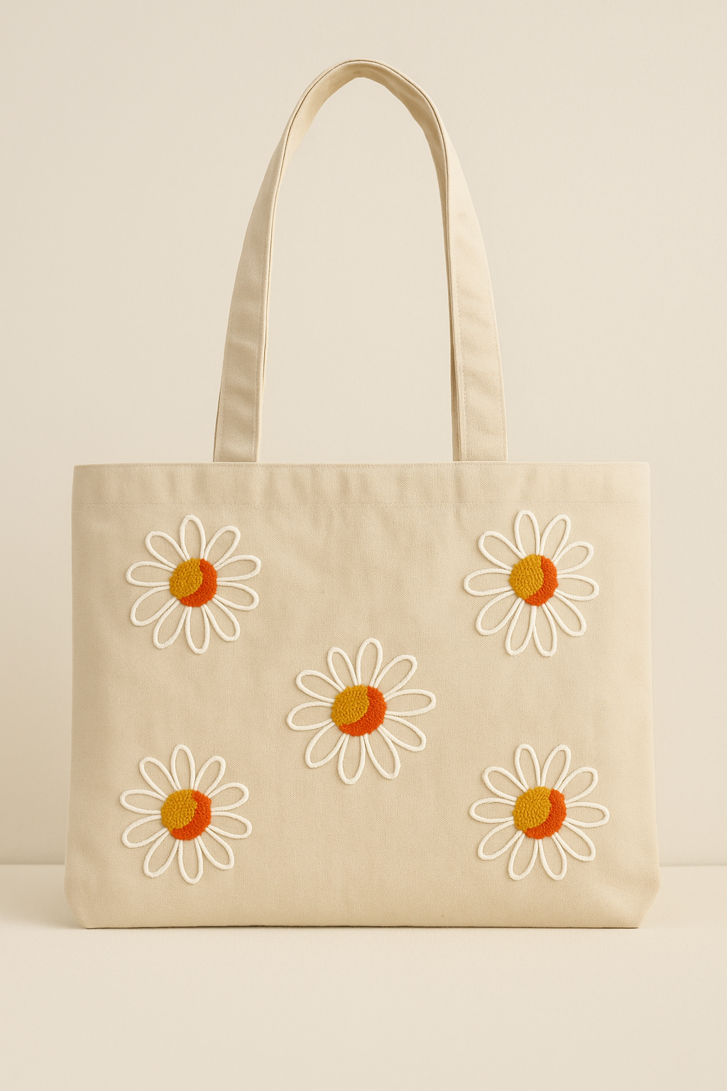 Turuncu Papatya Nakış İşlemeli Keten Çanta