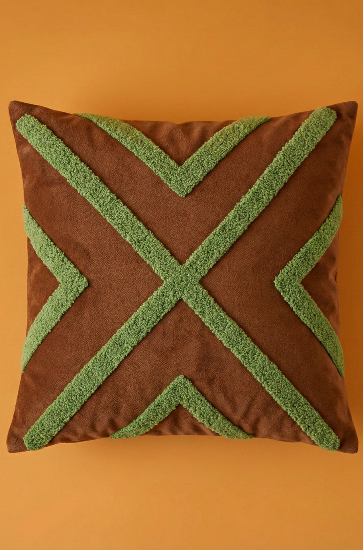 Nakış İşlemeli Kırlent Kılıfı - Geometrik Yeşil