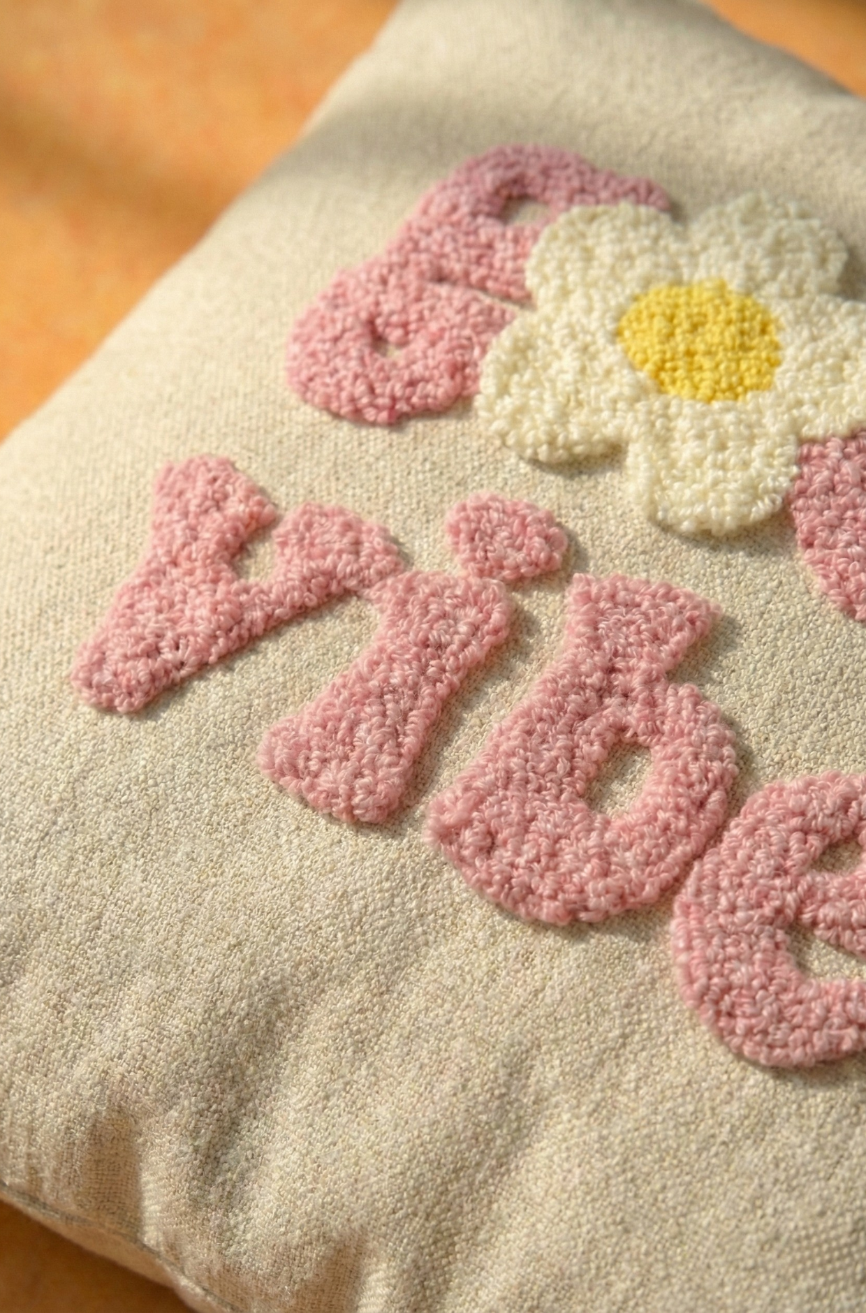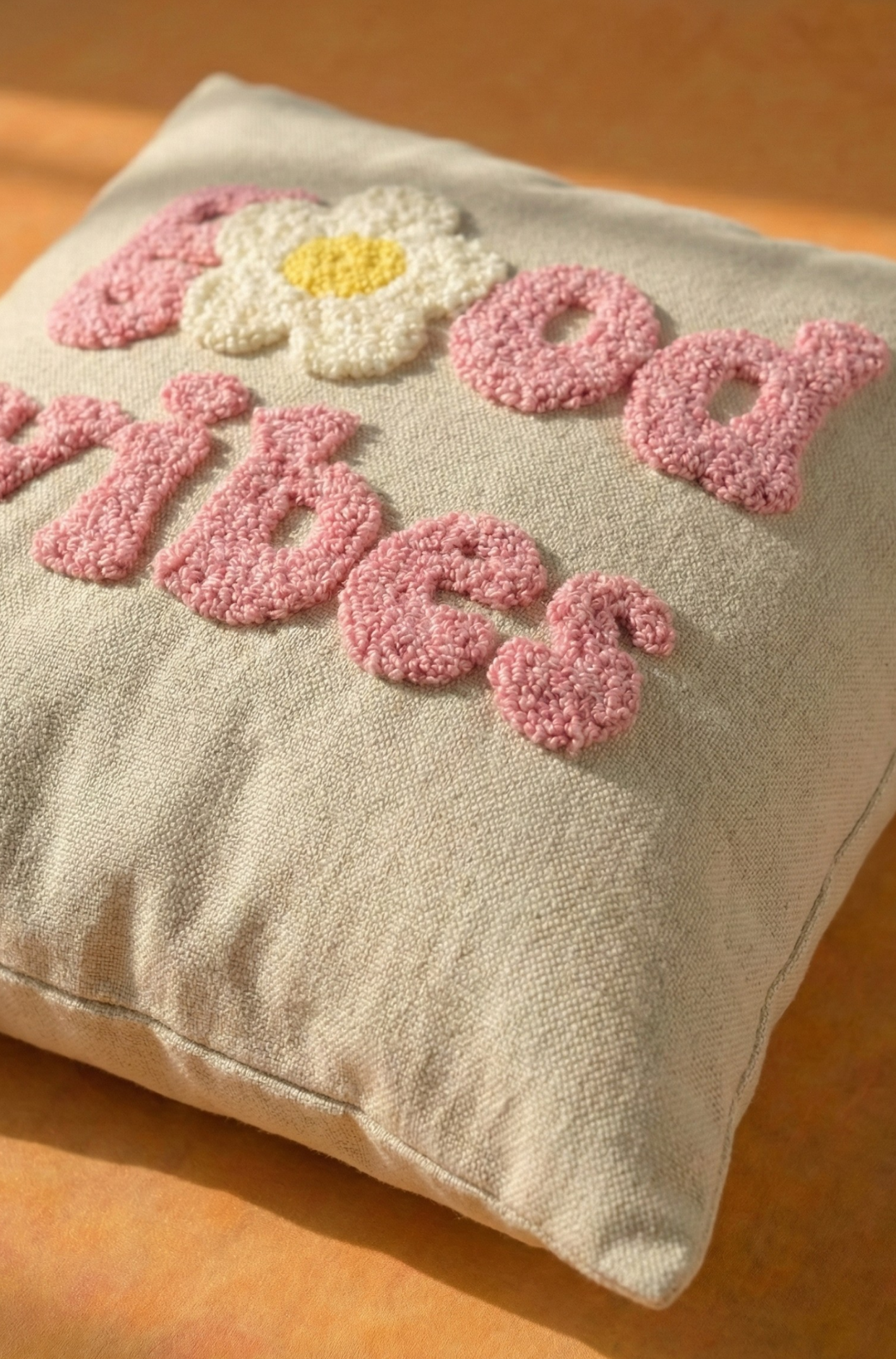 Nakış İşlemeli Kırlent Kılıfı - Good Vibes Pembe