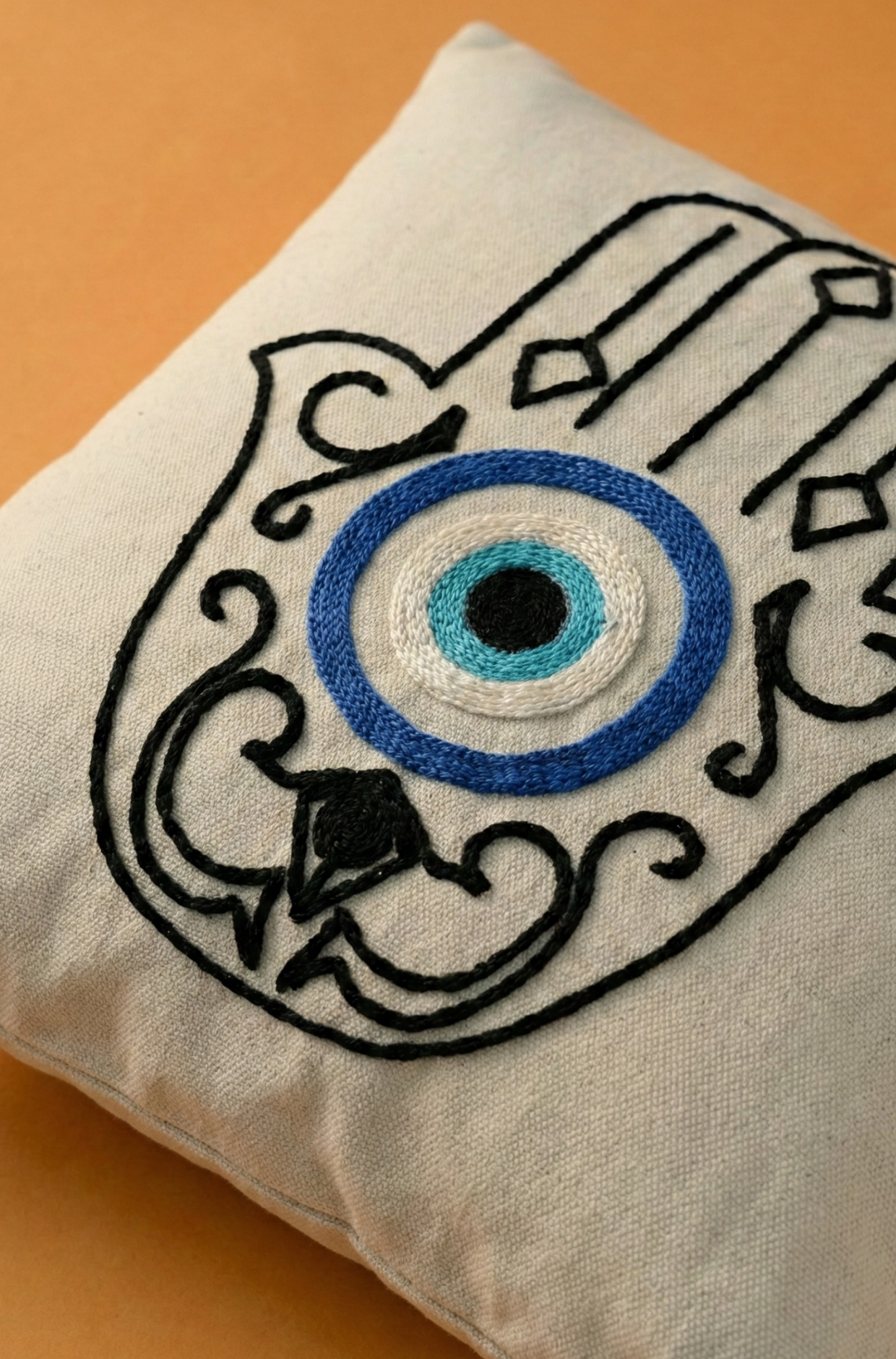 Nakış İşlemeli Kırlent Kılıfı - Nazar Desenli