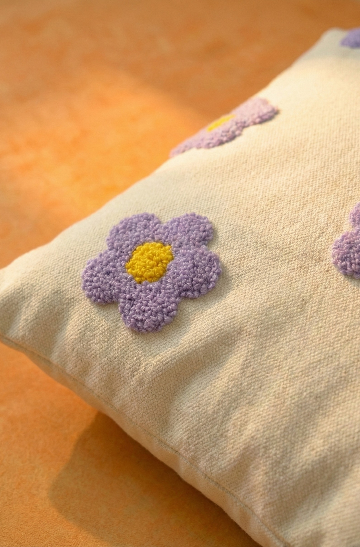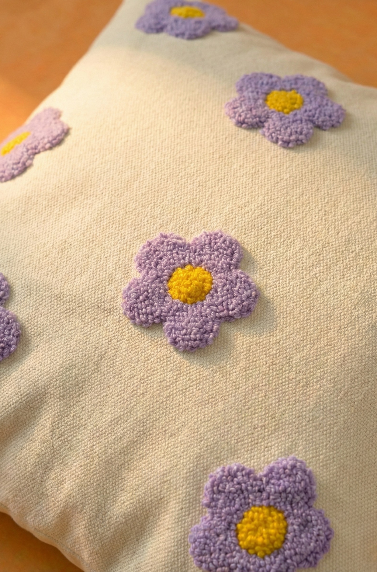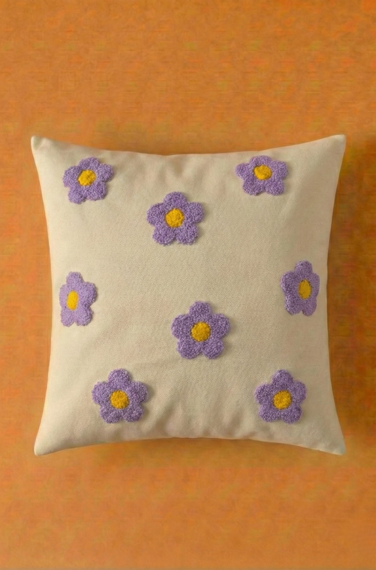 Nakış İşlemeli Kırlent Kılıfı - Papatya Desenli Mor