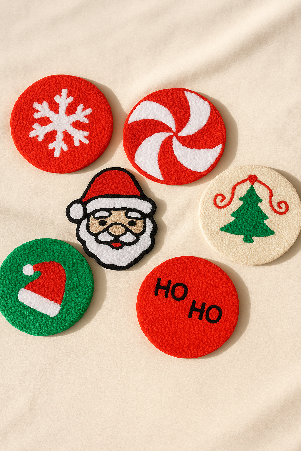 Yılbaşı Desenli Bardak Altlığı Sunumluk Masa Süsü