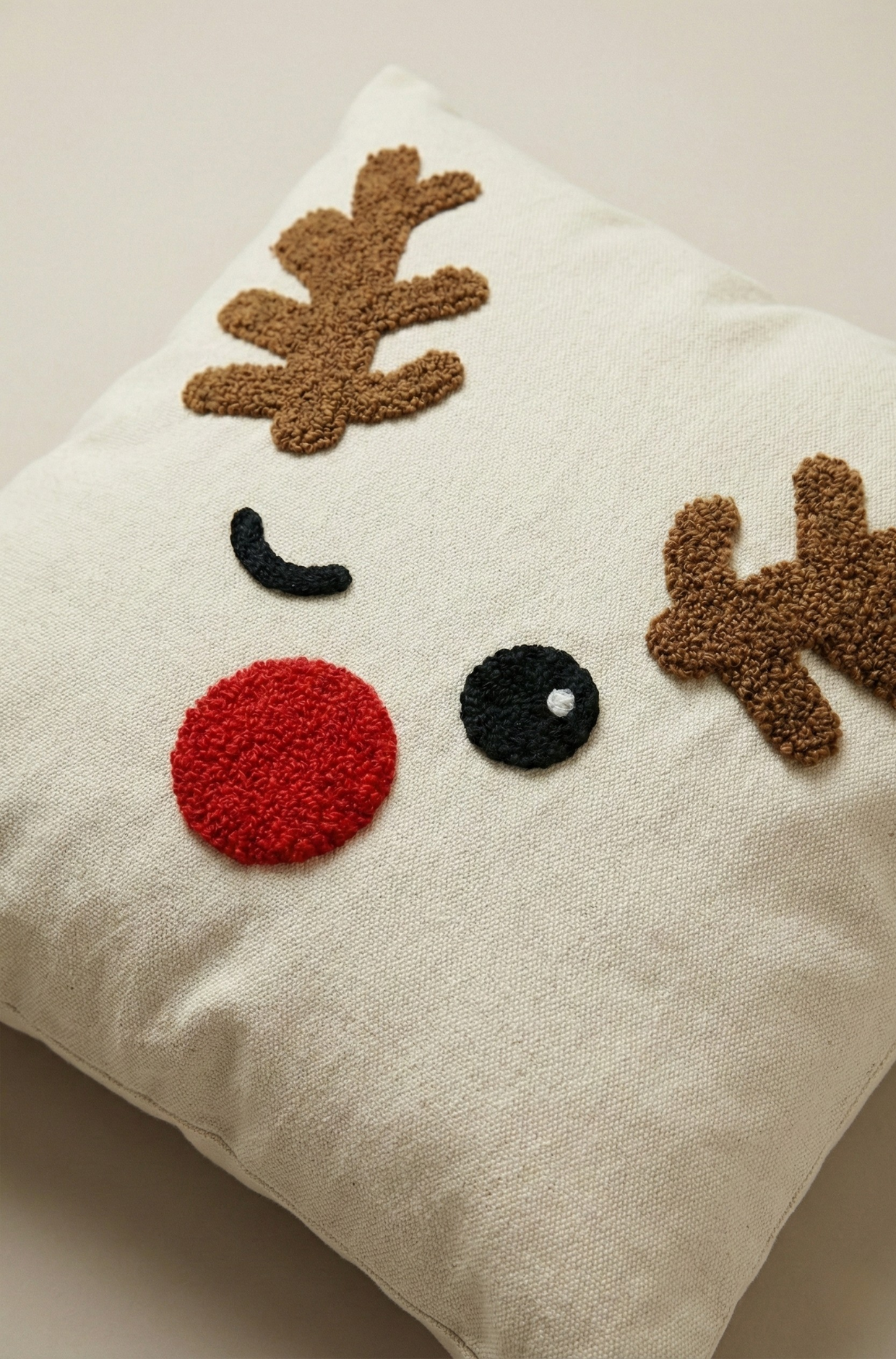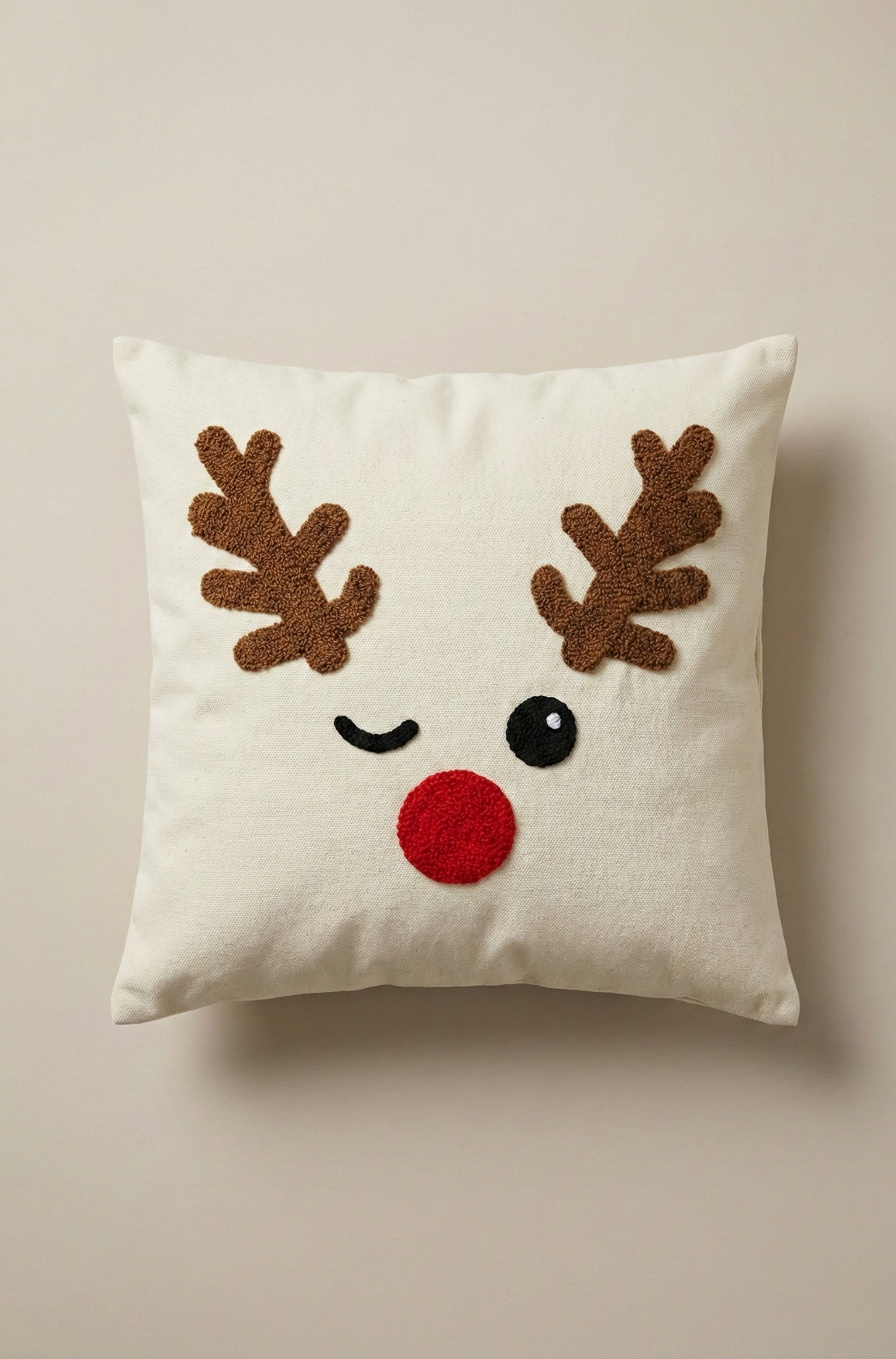 Yılbaşı Desenli Nakış İşlemeli Kırlent Kılıfı - Noel Geyik